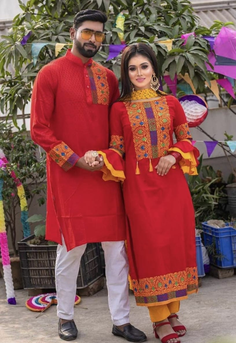থ্রী পিস এন্ড পাঞ্জাবি কাপল সেট